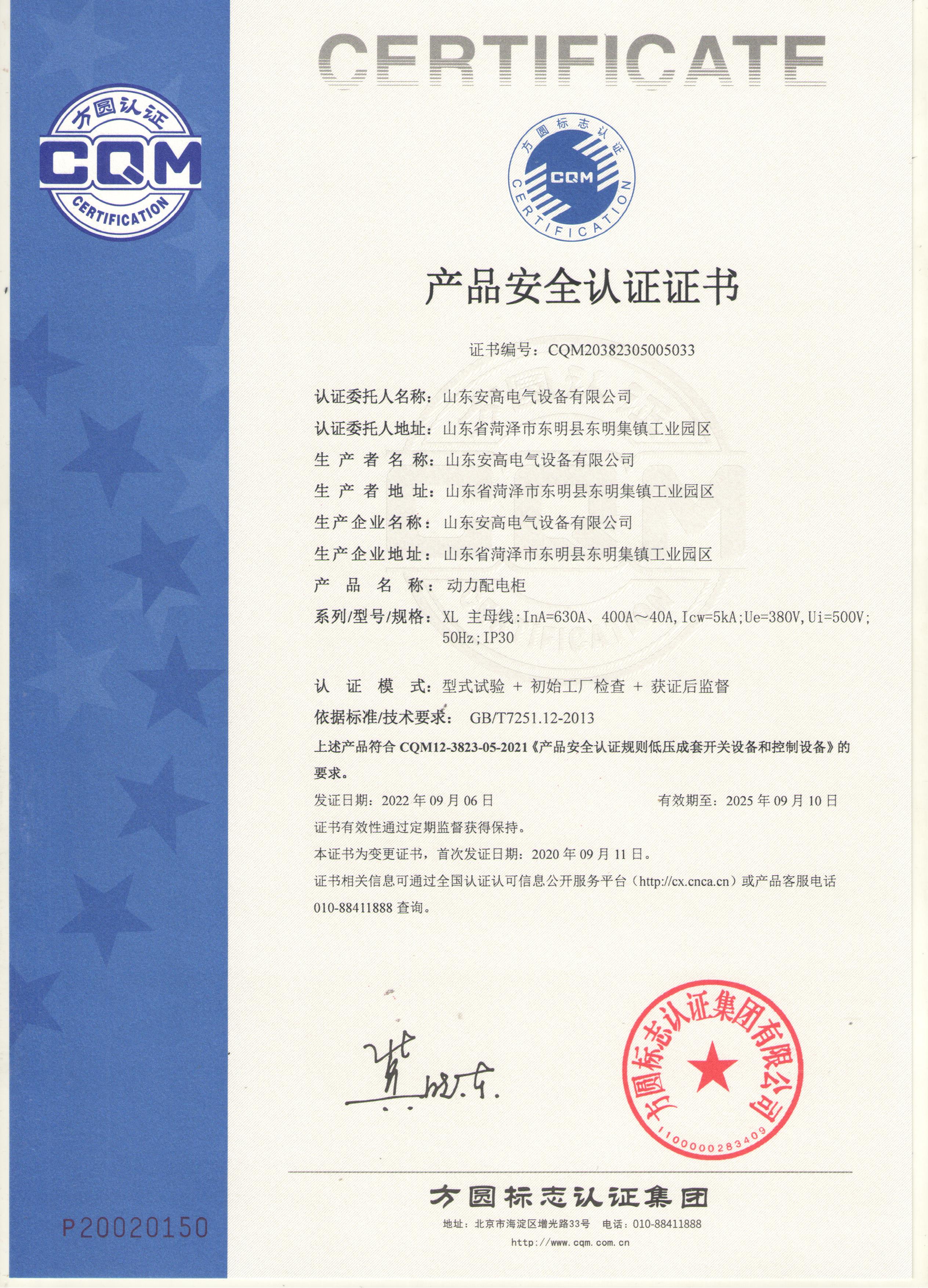 • 產品安全認證證書